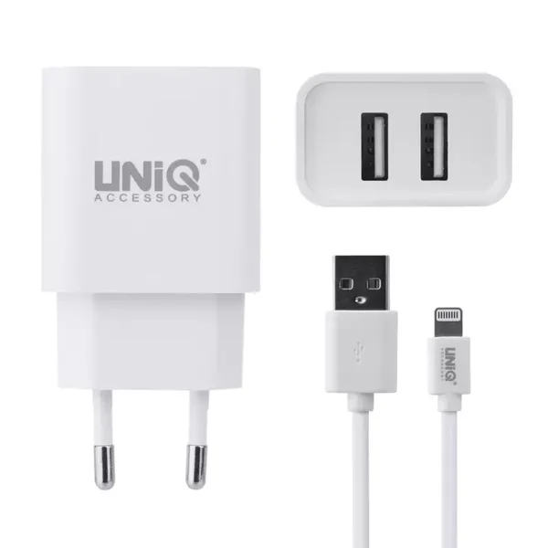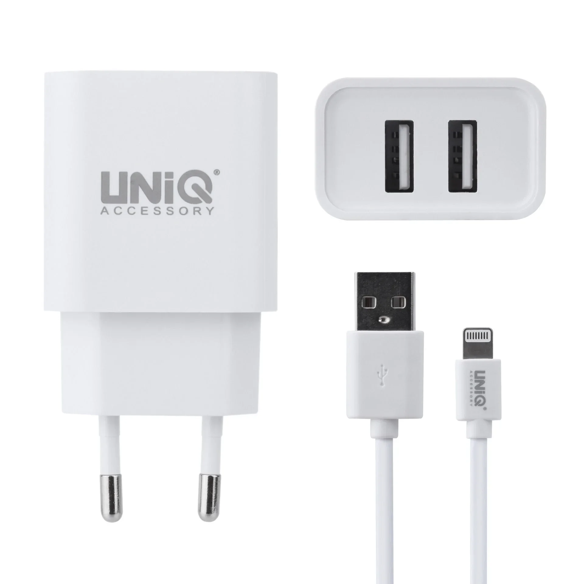 De UNIQ Accessory iPhone-oplader van 2.4A lightning met 2 USB-poorten is een lichtgewicht en compacte lader die kan worden gebruikt voor de Apple iPhone, iPad, iPod en andere apparaten die opladen via de Lightning-kabel.