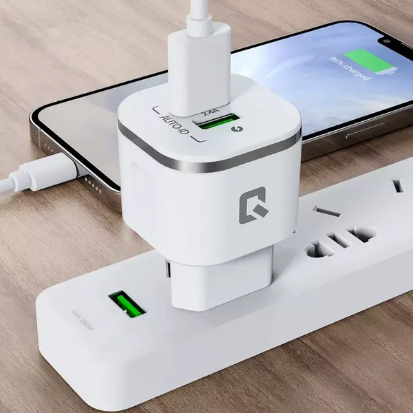 UNIQ Accessory USB Type-C snellader - 2x USB poorten telefoon oplader - wit