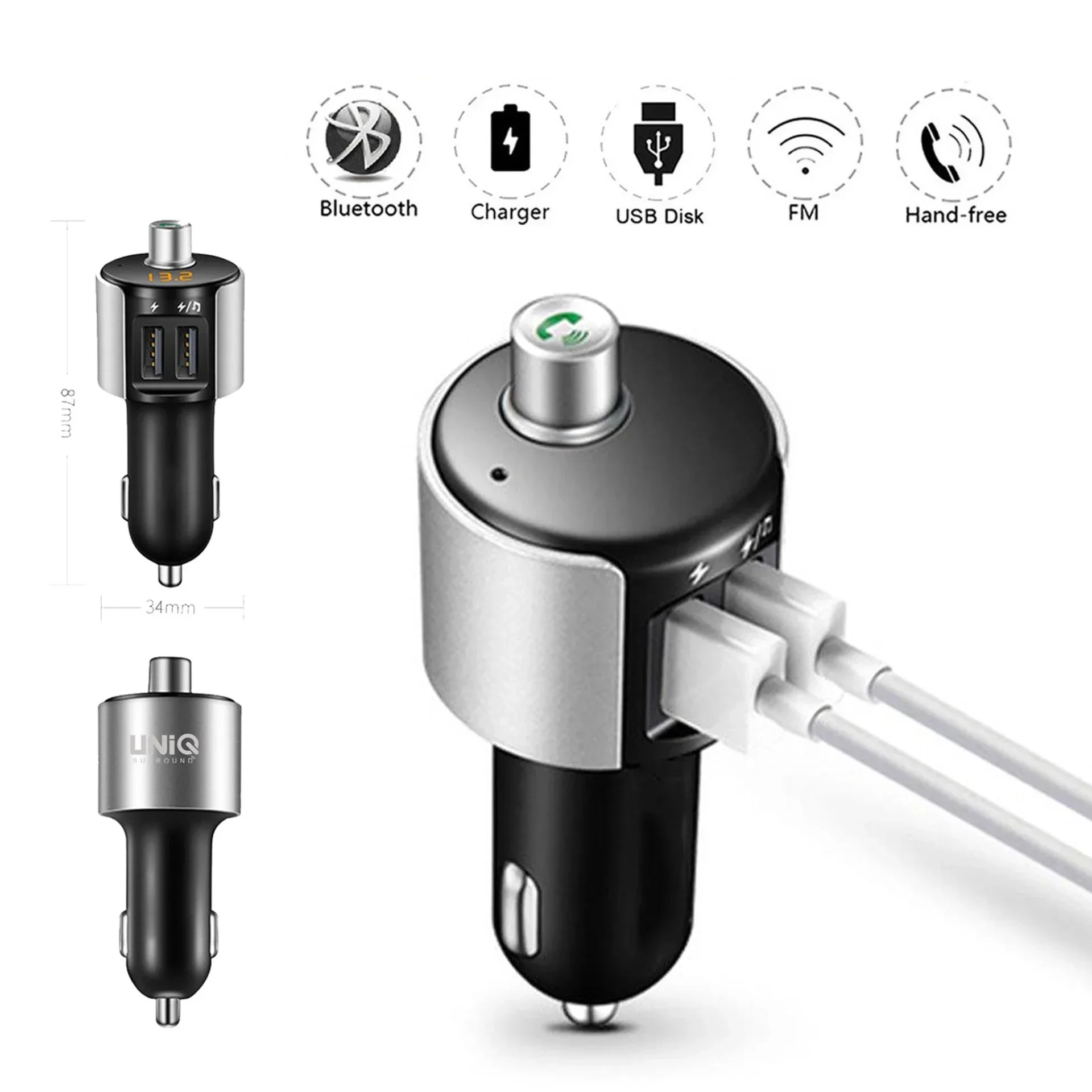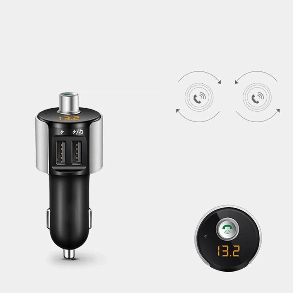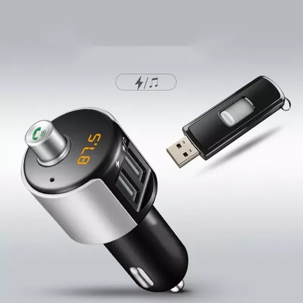 De FM Transmitter heeft ook twee ingebouwde USB-aansluitingen voor het opladen van je telefoon en tablet. Een van deze USB-poorten ondersteunt bovendien audio-input. Je kunt ook een USB-stick met MP3-bestanden aansluiten op de USB-poort en deze afspelen via de autoradio.